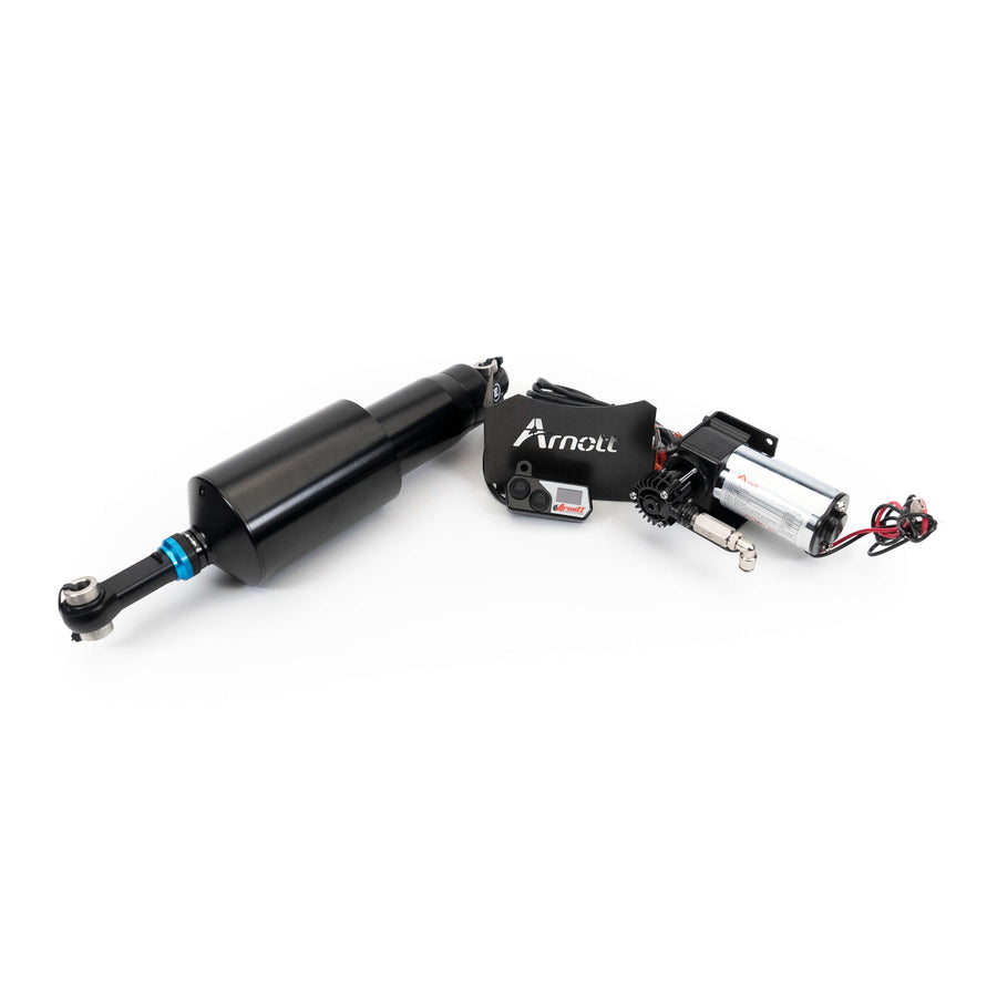Arnott’s new adjustable Ultimate Ride Air Suspension Kit for 2020-2023 BMW R18 Series offers TruAIR Technology with a rugged multi-ply air spring sleeve which is coupled with a custom JRi monotube shock absorber. Arnott’s Air Shock provides the rider with superior control, ride comfort and much greater height adjustability. Arnott pairs your shock with a small but powerful compressor and air distribution valve block which includes a muffler to control how fast air is released. Each shock is custom-crafted and rigorously tested in Arnott’s Florida manufacturing facility and is backed by Arnott’s Limited Lifetime Warranty